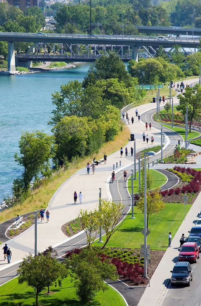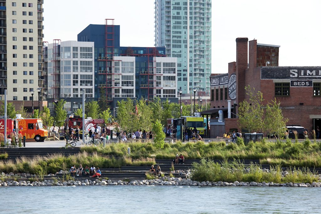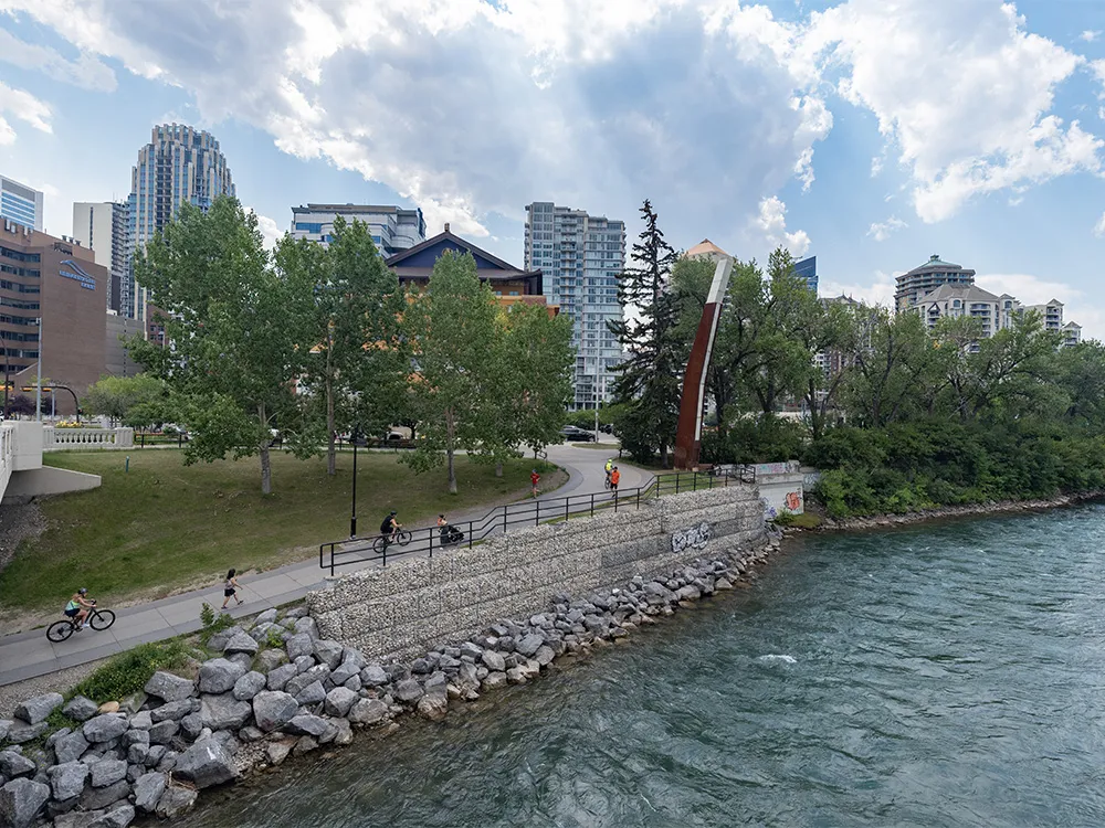The RiverWalk section of the City of Calgary Trail spans approximately two kilometres. This kid-friendly section is paved and flat.