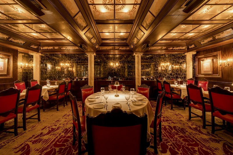 Landmark Canadian chophouse serving steaks & wine amid elegant burgundy leather & chandeliers.